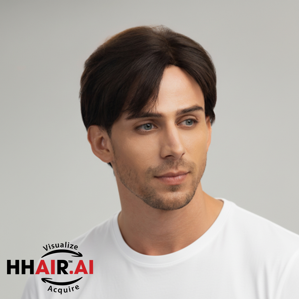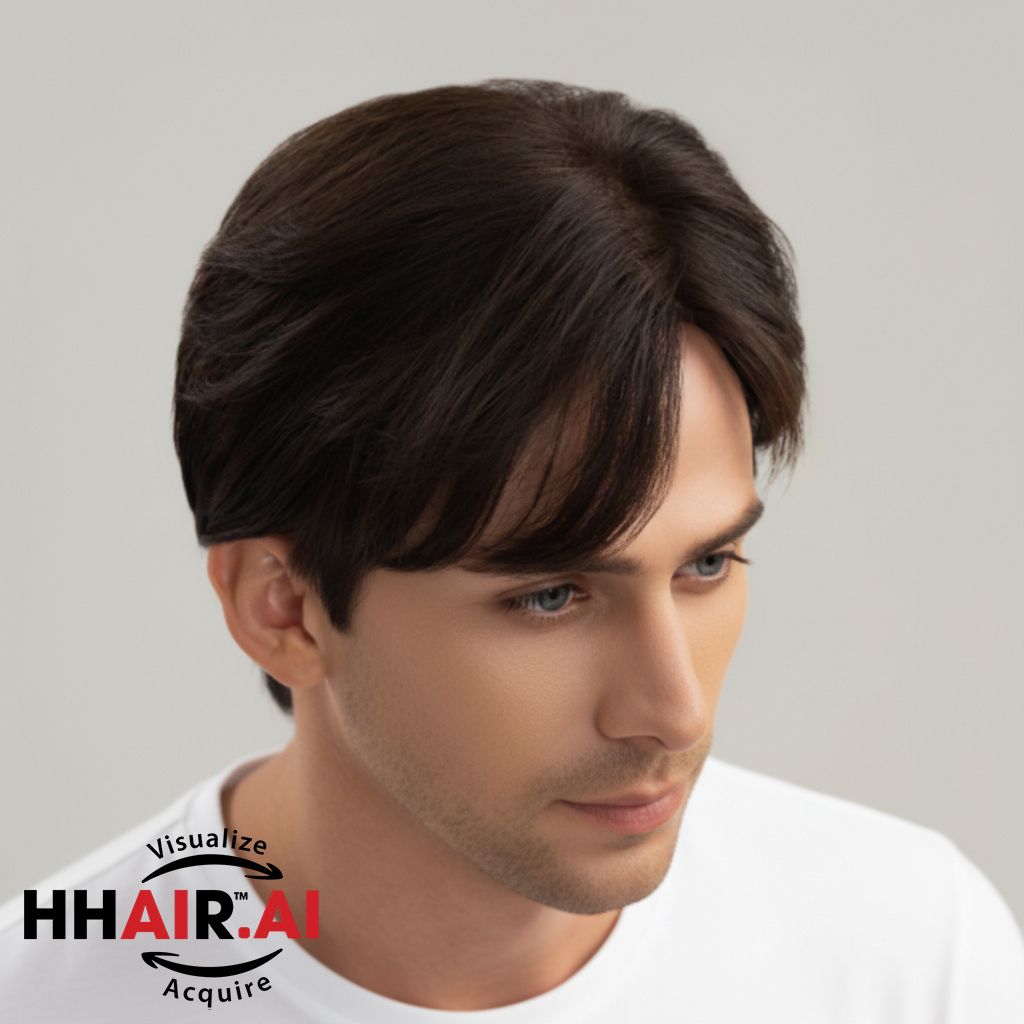 | Wigs Name | Men’s Full Wig – 7/3 Side Part, Slicked Down Style, Dark Brown |