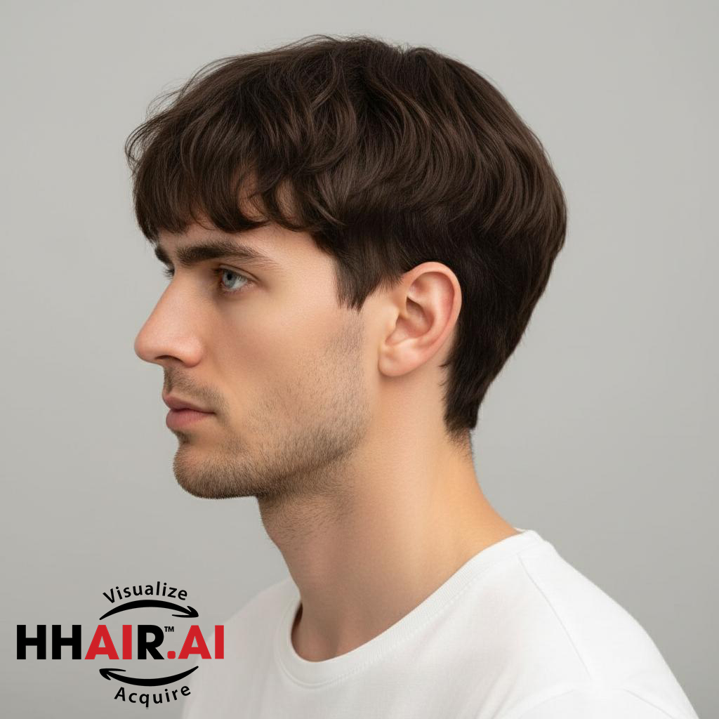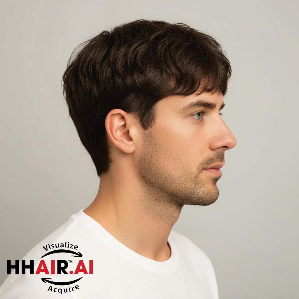 | Wigs Name | Men’s Hair System – Basic Style with Side-Swept Bangs, Human Hair |