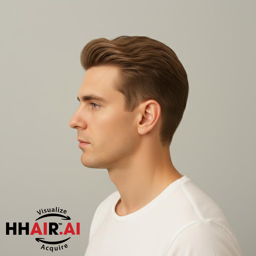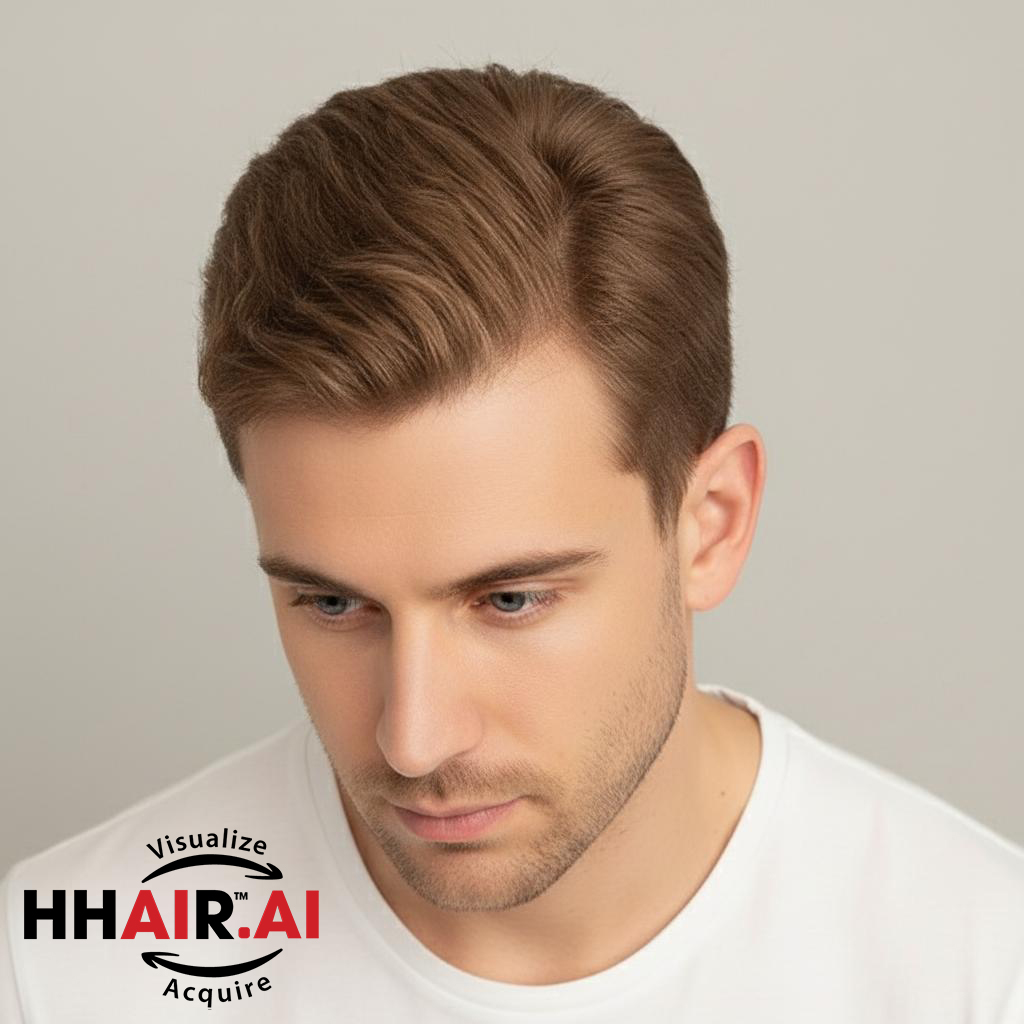 108069. Men’s Hair System – European Slicked-Back Style, Human Hair
