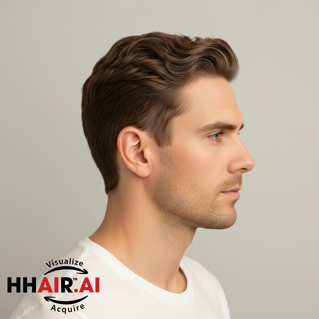 | Wigs Name | Men’s Hair System – European Slicked-Back Style, Human Hair |