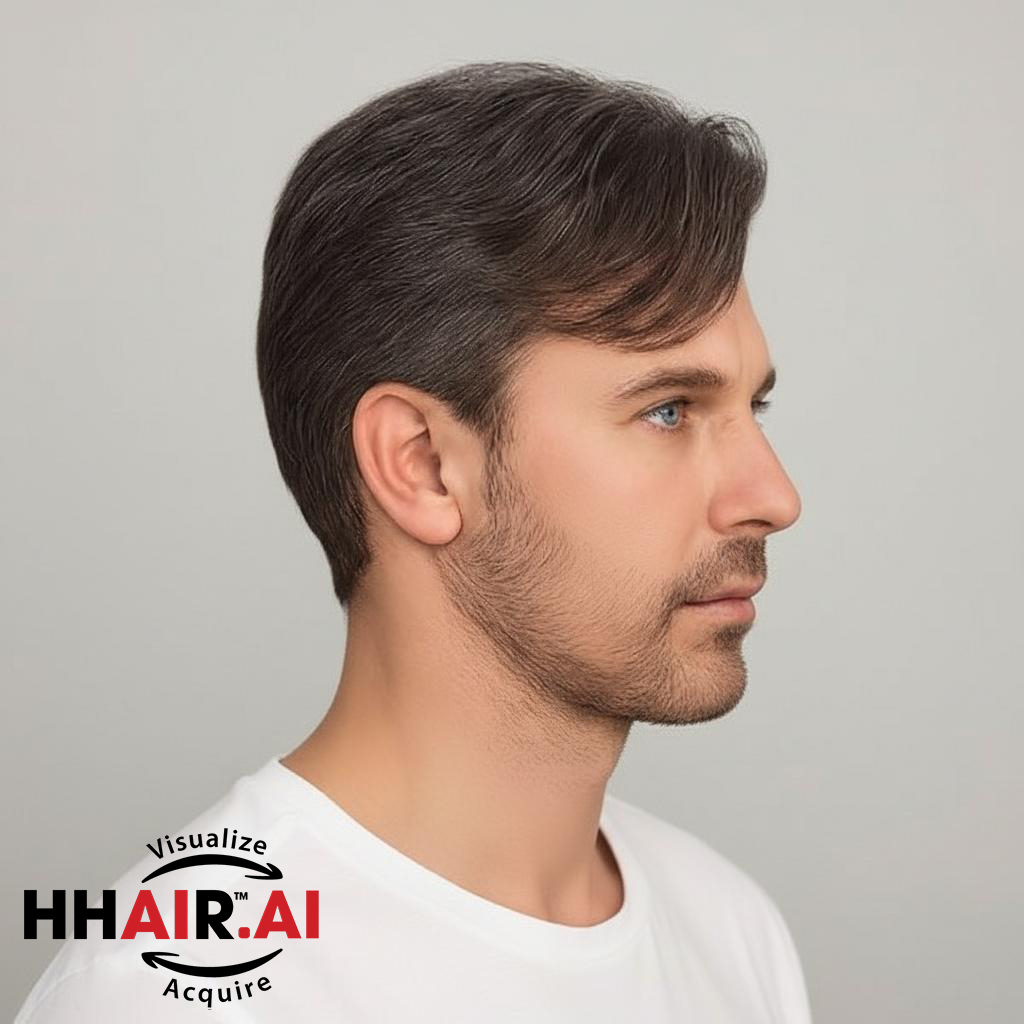 108070. Men’s Hair System – Side-Swept Bangs Style, Human Hair