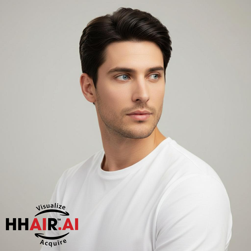 108039. Men’s Top Hair System – 3D Ultra-Thin Skin, Layered Wispy Bangs, Dark Brown