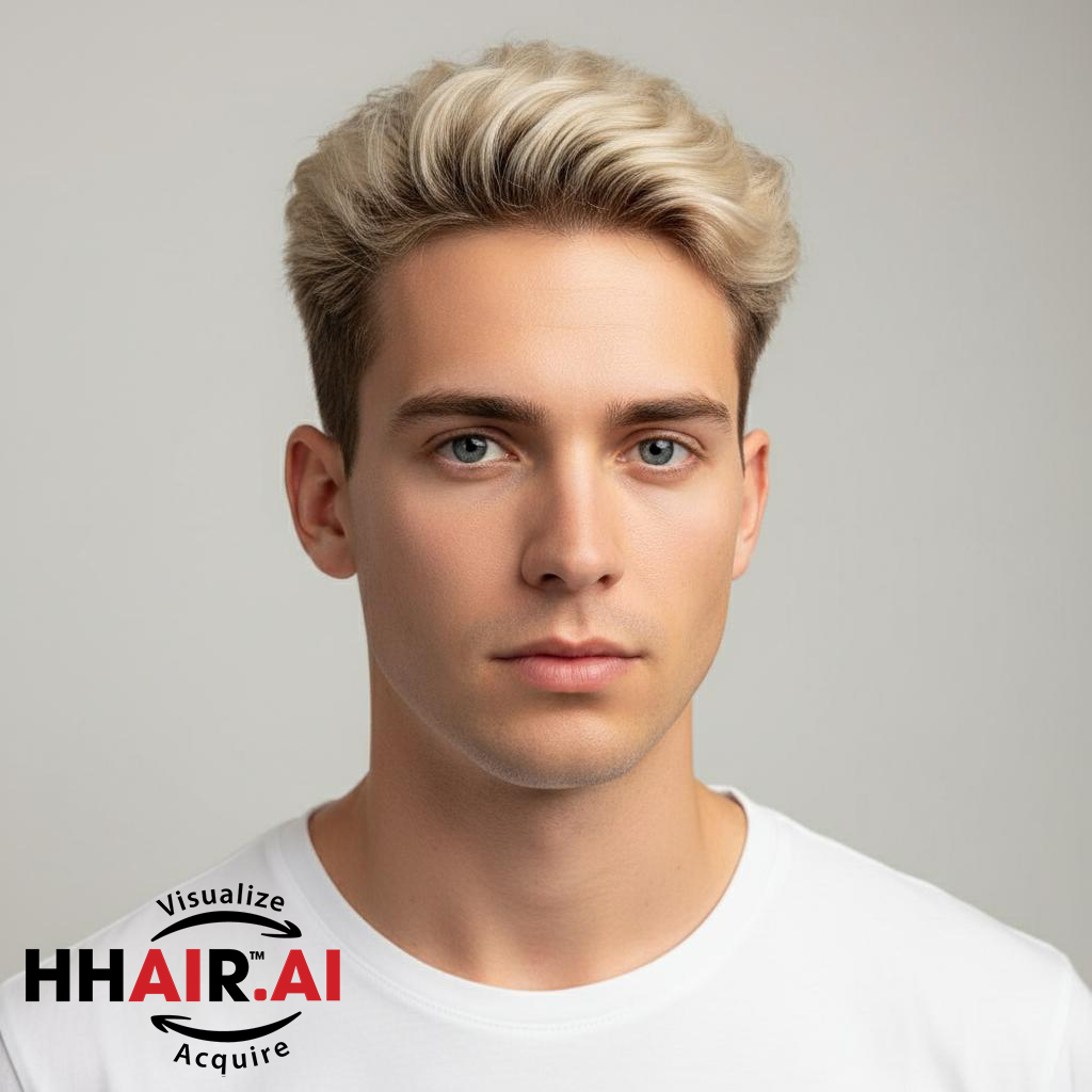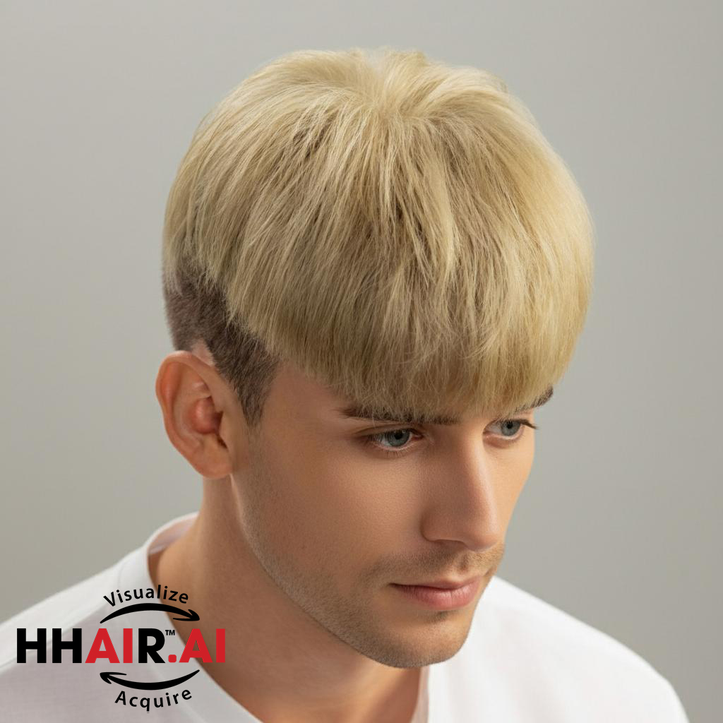 | Wigs Name | Men’s Top Hair System – 3D Ultra-Thin Skin, Platinum Blonde Layered Style |