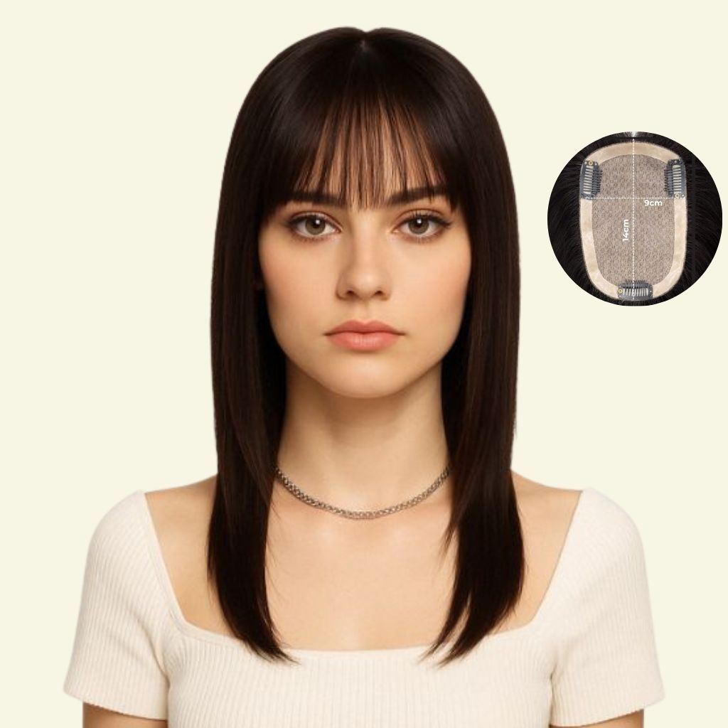 107011. Women’s Hair Topper – 3D Ultra-Thin Skin, Wispy Bangs, 35cm