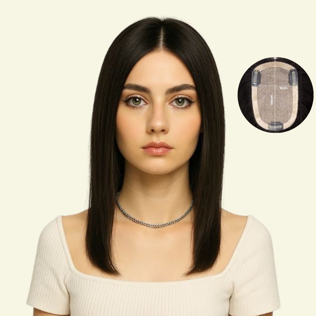 107015. Women’s Top Hairpiece – 4D Ultra-Thin Skin, Two Bangs, 35cm